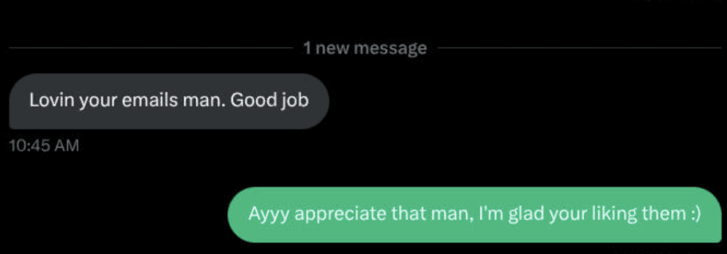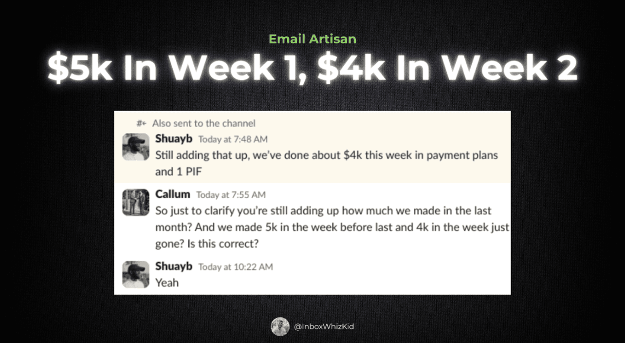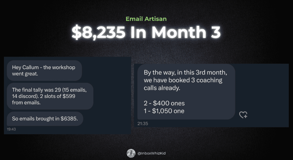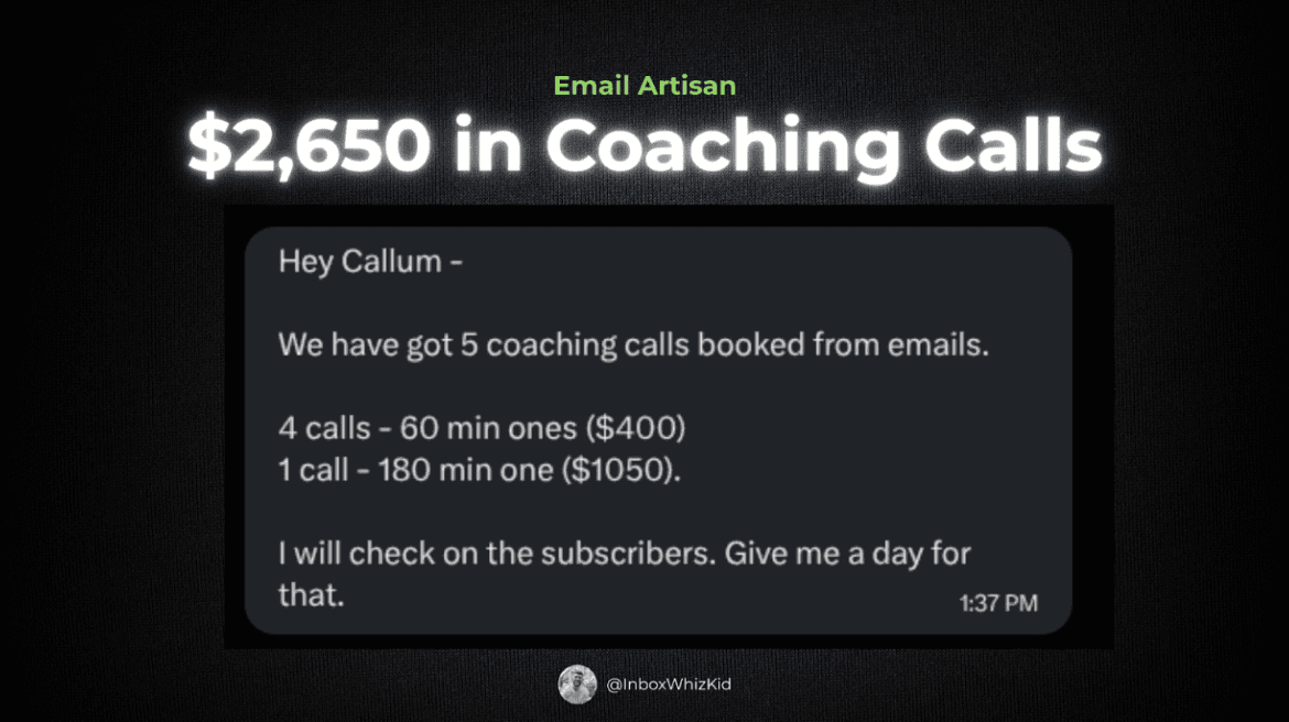 3) Closed his first-ever $2k high-ticket sale"I didn't make any money from my newsletter for years and years. It wasn't until I started working with Callum that I started monetising it."